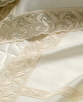上個世紀開始,Somma即以全球限量的「蕾絲寢具」深深風靡上流生活圈。Somma的床組有如極致的工藝品,採最柔滑的埃及長纖棉,搭配頂級的雙股紗緞織技術,讓床組的每一平方英吋棉紗高達620條(雙股)!帶來絕佳的手感與絲綢般的光澤。蕾絲床組更以每吋16尖針的高針距刺繡細緻蕾絲,加上邊緣細膩的雙迴針無接縫處理,讓蕾絲極其細膩平整、下水後也不易變形。